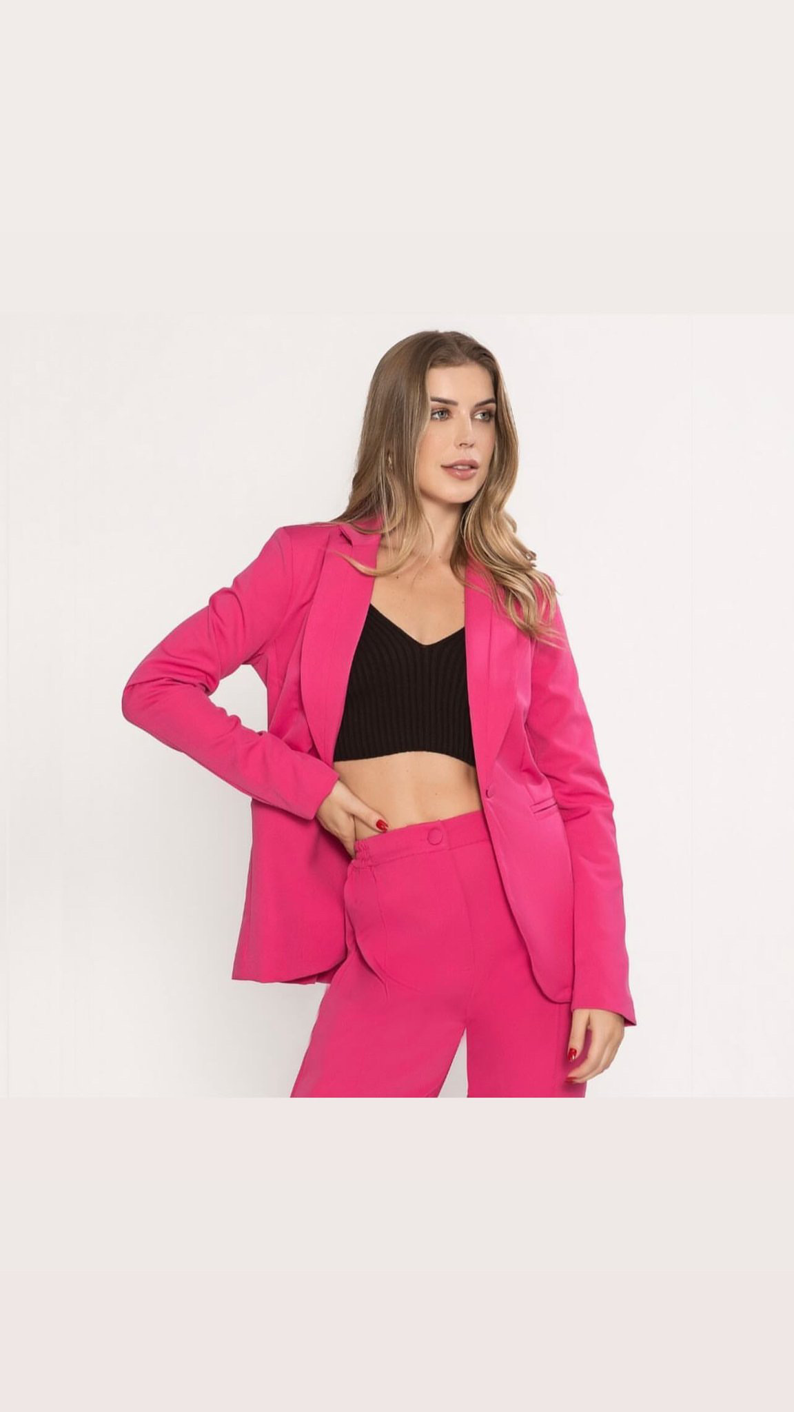 Blazer alfaiataria com botão encapado , forrado e acinturado.